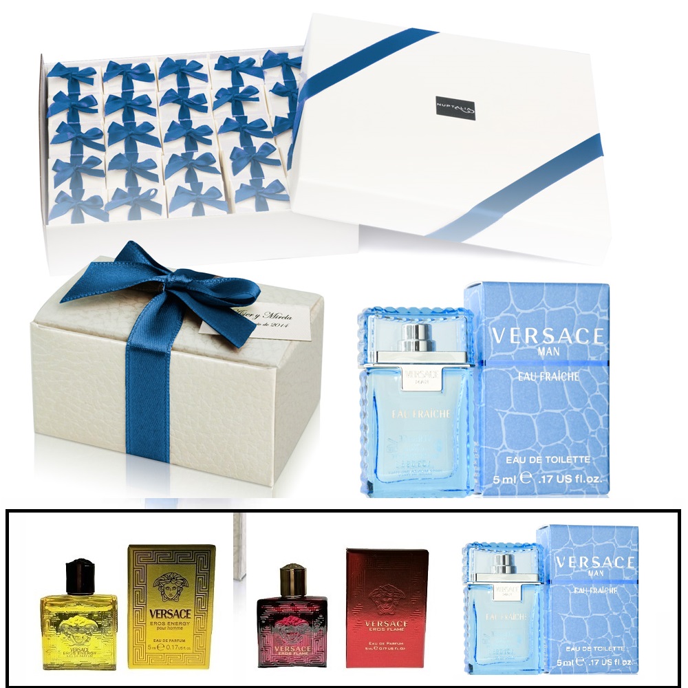 Pack 24 mini perfumes Eros mixto (eros flame y enery edp y Eau fraiche edt mezcladas) para hombre 4,5 ml EDT en cajita blanca con tarjeta